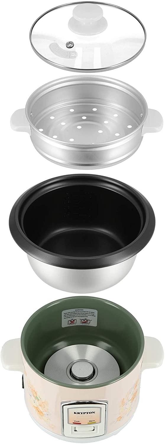 Krypton 0.6L Rice Cooker and Steamer is an easy way to cook rice. With a 0.6L capacity bowl, enough space to cook up to 3 cups of rice, it is useful for larger households who love to cook. The keep warm function allows you to keep your rice warm, ideal for those busy families who find it hard to all sit down together. The rice cooker and steamer include a spatula and measuring cup along with an additional tray for steaming fish or vegetables making the piece very versatile. The stainless steel base design is easy to clean and the glass lid allows you to view your food whilst cooking and its non-stick removable bowl enables easy cleaning and easy of use. This rice cooker has a sturdy lid and the stainless steel rim that fixes it into place. It does not get smoky and lets you watch your rice as they are being cooked.
