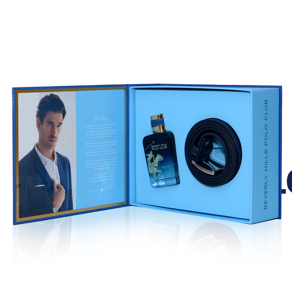 The Beverly Hills Polo Club Gift Set EDP Trophy & Belt for Men offers an exquisite combination of style and scent. This luxurious set features the Trophy Eau de Parfum, a fragrance that embodies masculine elegance with its fresh and woody notes. Accompanied by a premium leather belt, this gift set is the perfect choice for the modern man who appreciates sophistication and refinement.