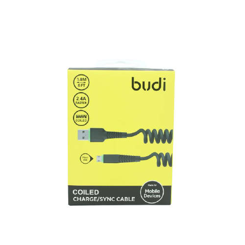 Budi M8J150MS USB Micro 1.8M 2.4A Faster Coiled -BLACK