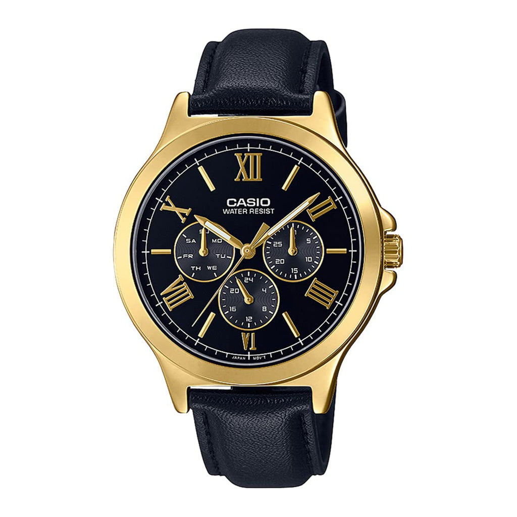 Crafted from high-quality materials, the Casio MTP-V300GL-1AUDF Analog Men's Watch is built to last. It features a durable leather strap that's both comfortable and stylish, as well as a scratch-resistant mineral crystal that protects the watch face from damage.