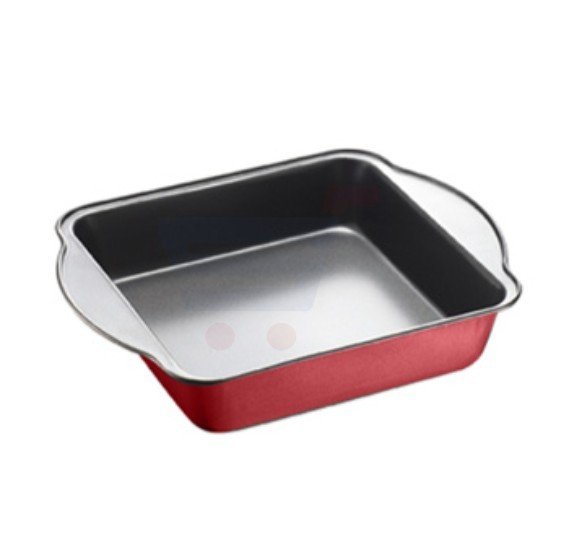 Square Pan, Size: 27.3*22.3*5.2cm • Thickness: 0.4mm • Material: carbon steel • Coating: • inner: Grey non-stick coating; • outer: Purple color coating.