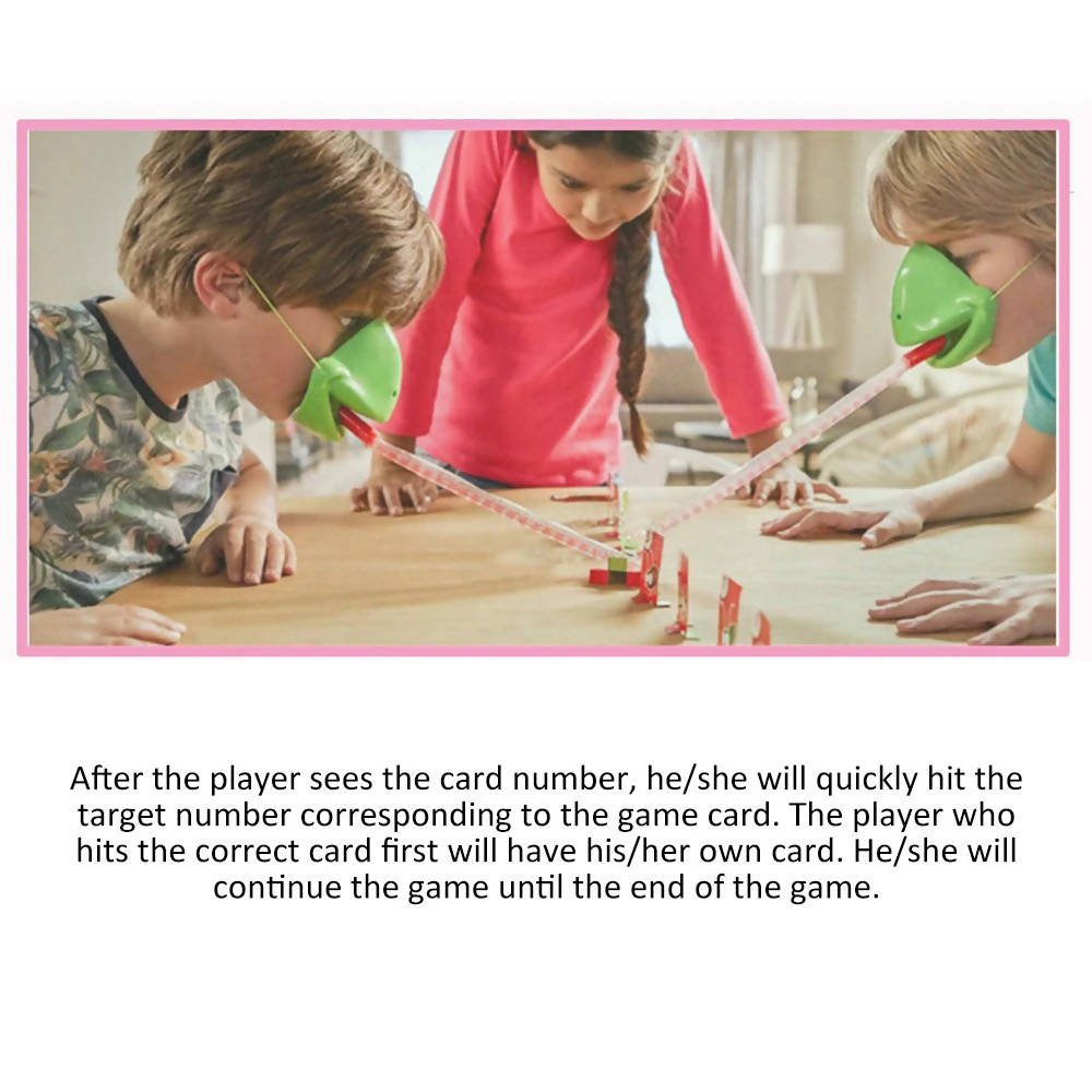 【Perfect Gift】: Blow through the tube in the mask to shoot the tongue out flip over a number card to decide which target card to aim for game that are great fun from children to adults. Perfect for social and family bonding.