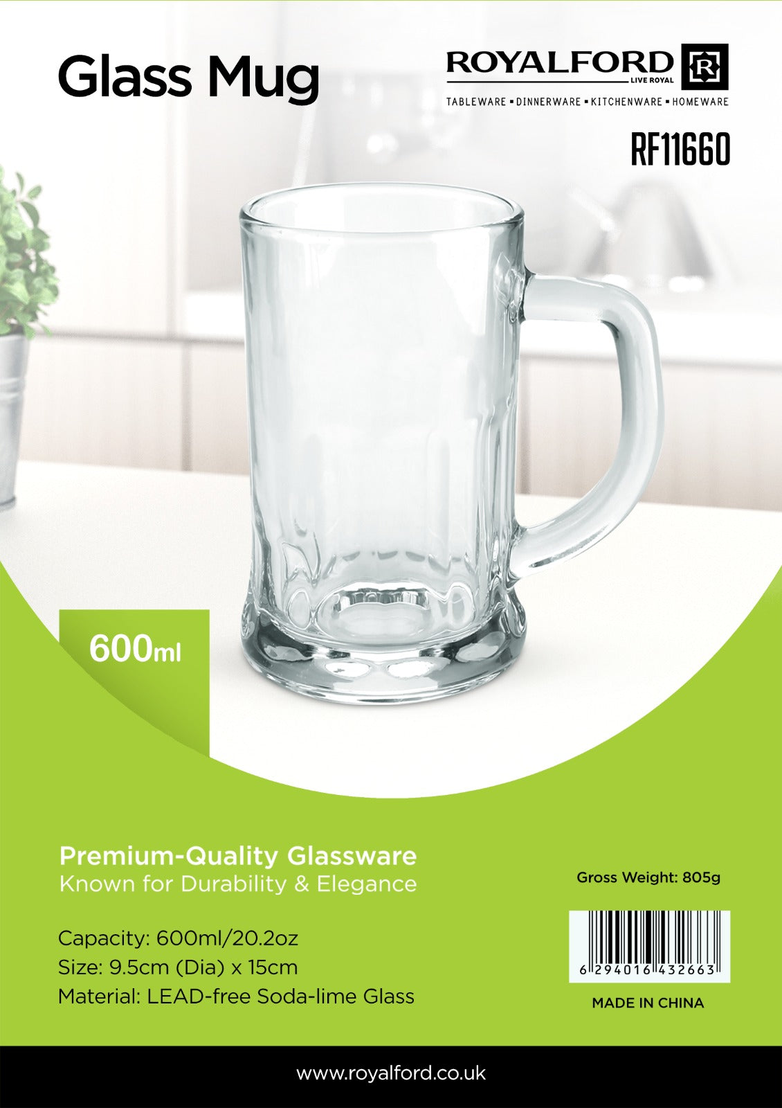 Coffee or tea never looked more stylish than now that you will be serving it in the 3pieces Royalford RF2752-GW Glass Mug set. The mug is made from glass and is versatile enough to be used day-to-day or on some special occasions and has a capacity of 8oz.