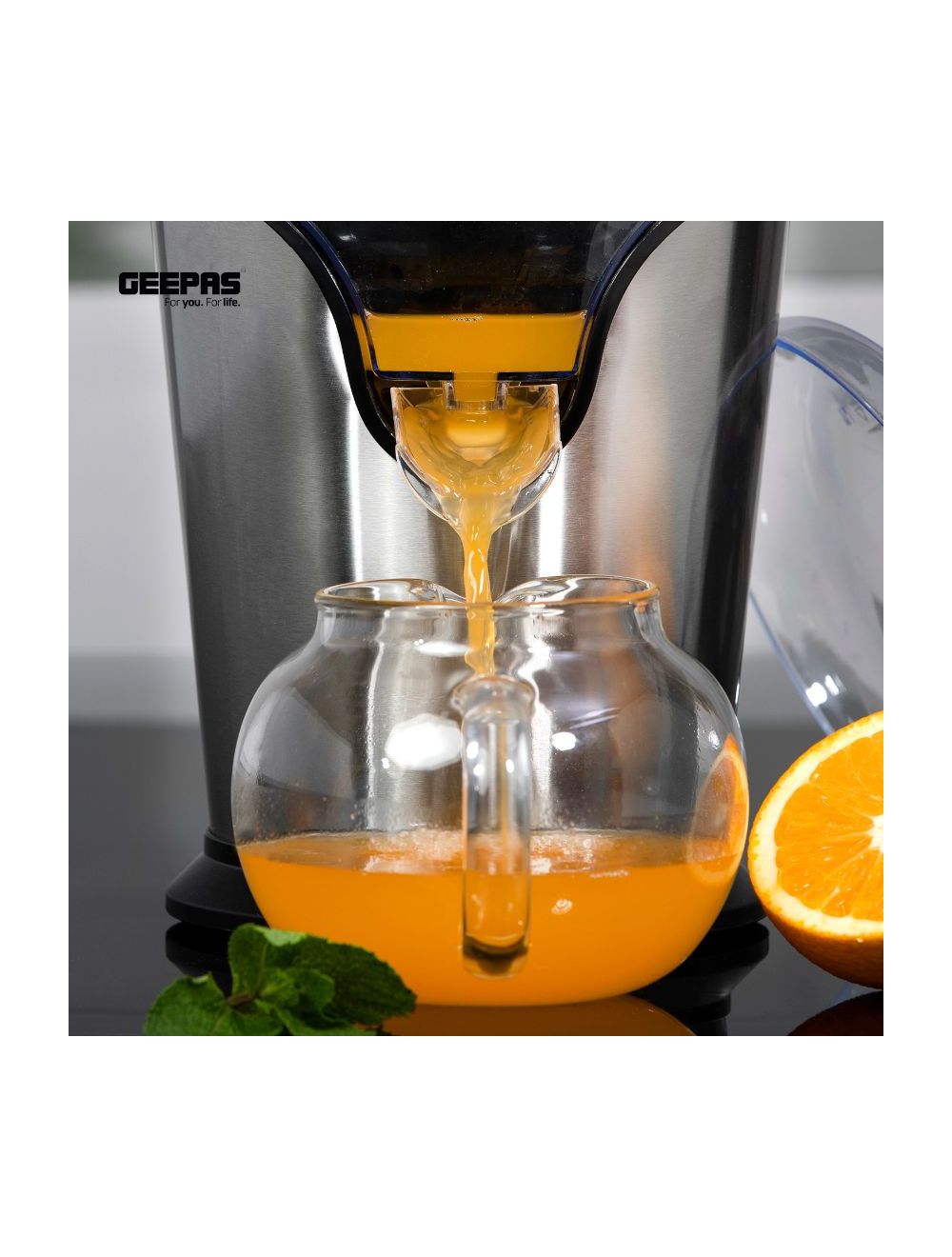 The device can quickly and accurately squeeze out the juice from citrus, leaving only one peel. Making of a delicious juice won't bring absolutely any inconvenience. 100W powerful motor extracts juice fully & works in silence. Making fresh and healthy drinks at home has never been easier than with the Geepas citrus juicer. It'll help you to get your five-a-day & help you live a healthier life, as there is no added sugar, preservatives compared with supermarket brands.
