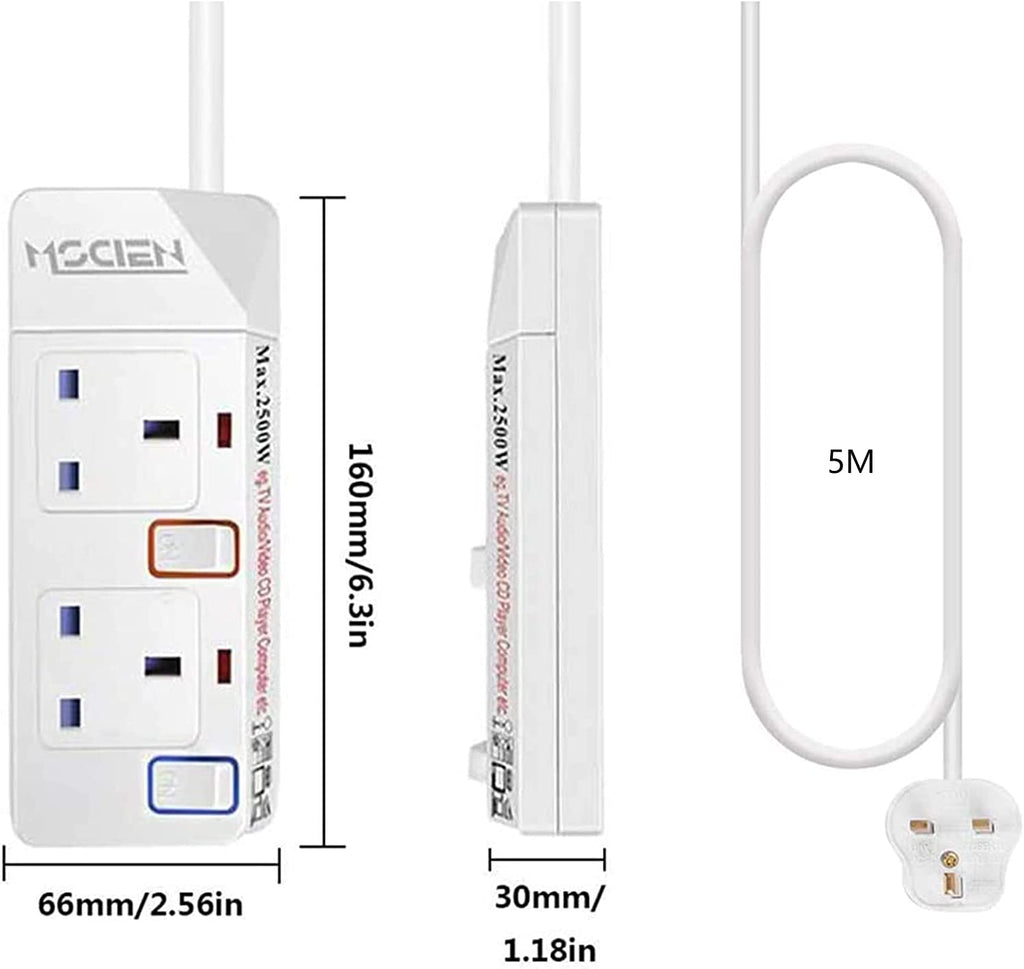 The Mscien 2 Way 5M Extension Cord is a light, compact, and highly efficient power station designed to meet all your electrical needs for appliances and mobile devices. Its long cable and dual socket design make it the ultimate space-saving solution for both home and office use.