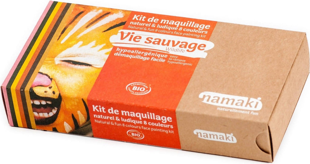Discover the world of wildlife! The face painting set includes 8 certified organic paints that are dermatologically tested and well tolerated by the skin. The kit includes a brush and 2 latex sponges for easy application.