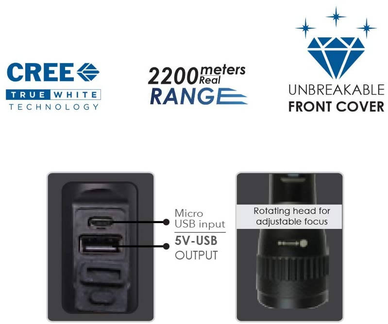 - 3Modes: high bright, low bright and sos unbreakable front cover.