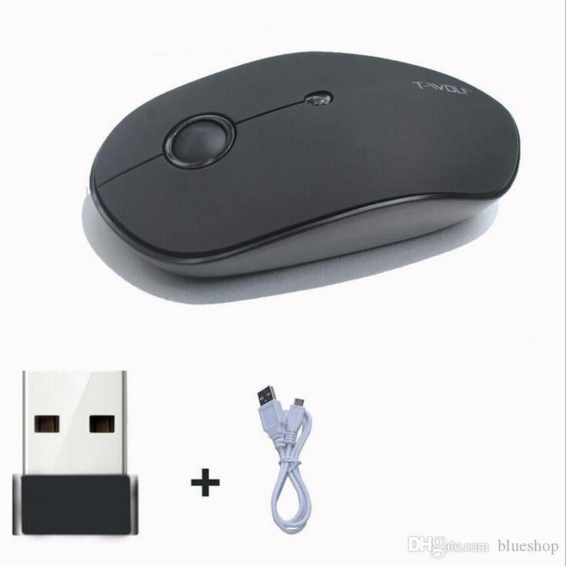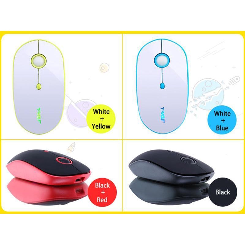T-WOLF Q10 Wireless Rechargeable Computer Mouse 2.4GHz Mute Slim PC Mouse Portable USB Optical Mice 1600 DPI for Mac book/ Laptop/ Notebook