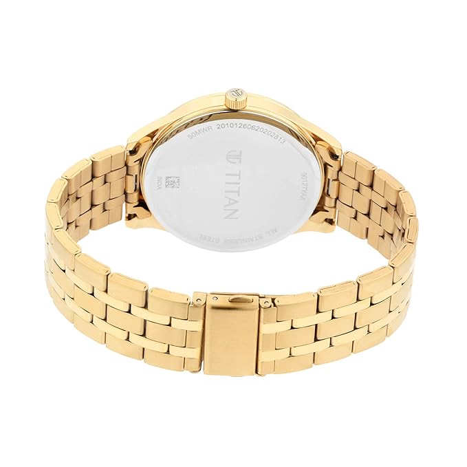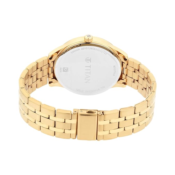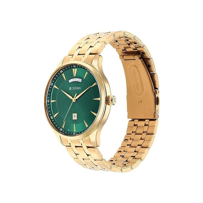 Titan Metal Regalia Opulent Analog Men's Watch. This statement timepiece boasts a captivating dial (mention dial colour if available, e.g., black, blue, or a sophisticated white) housed in a polished stainless steel case. The Regalia Opulent collection's intricate details and bold design elements elevate this watch from a timepiece to a conversation starter.