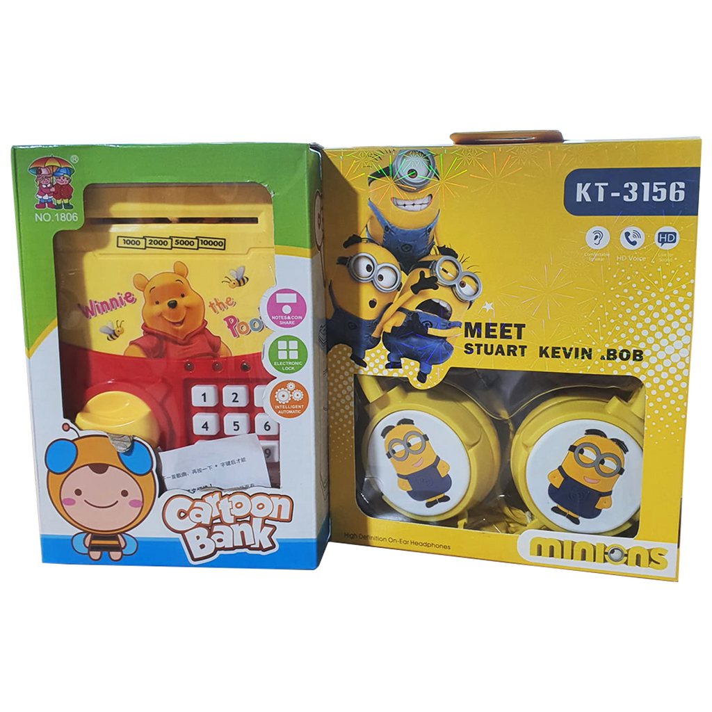 Winnie the Poo Cartoon Money Bank & Minions Music Stereo HeadPhones - Bundle Offer