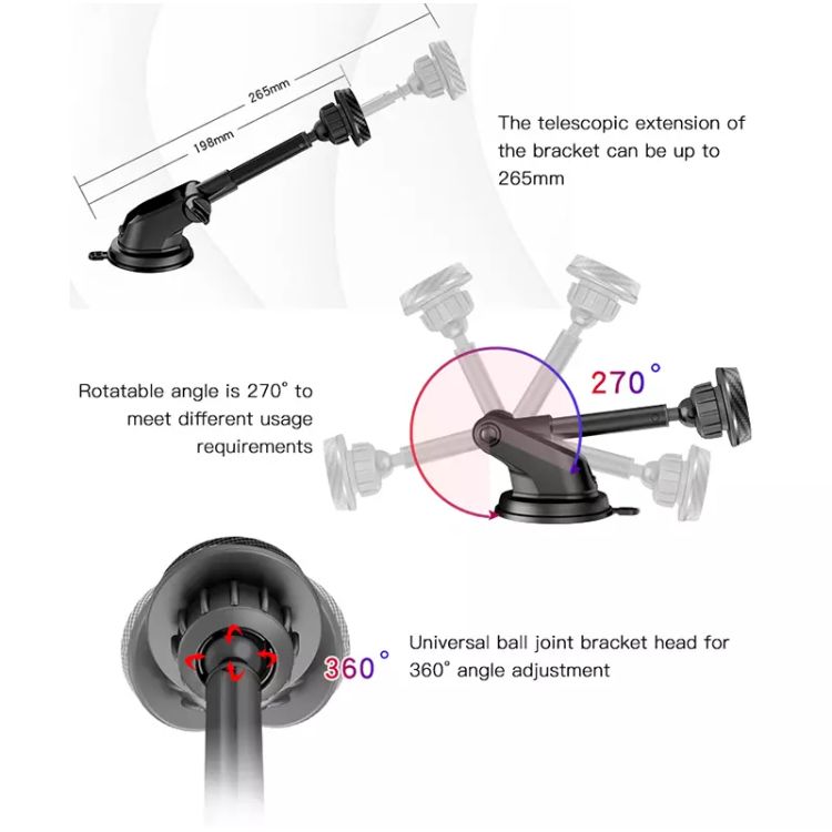 Yesido Windshield Gravity Sucker Telescopic Magnetic Car Phone Holder For iPhone / Samsung Stand Dashboard Rotatable Metal Sucker