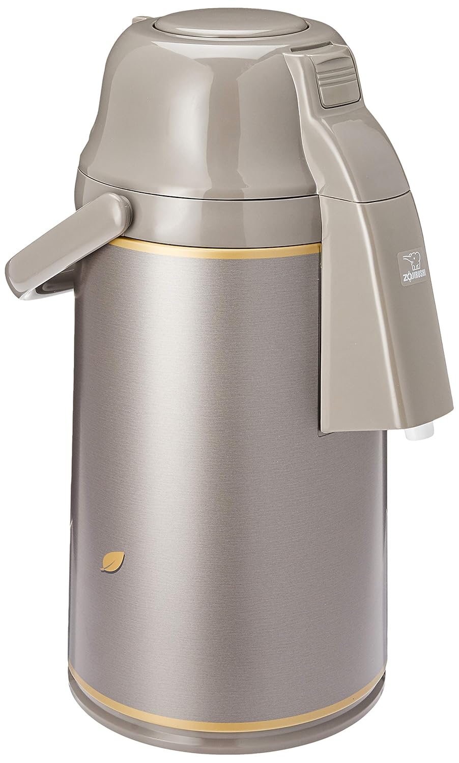 The Zojirushi Glass Lined Vacuum Insulated Air Pot in Herb Brown is designed for ultimate convenience and excellent temperature retention. Featuring a vacuum glass liner, it keeps your beverages hot for hours. The easy-touch quick-serve button provides effortless pouring, while the detachable lid and stopper with a pump safety lock ensure safe operation. The air pot is equipped with a 360-degree swivel base, a long nose for easy dispensing, and a durable stainless steel suction pipe. With its large handle, this air pot is perfect for large gatherings, making serving drinks easier than ever.