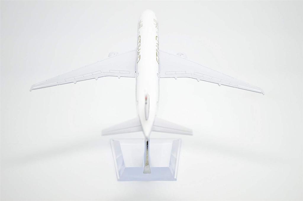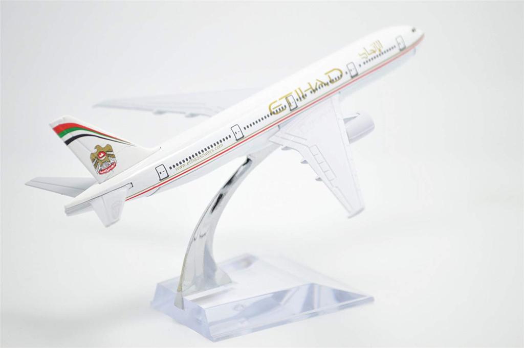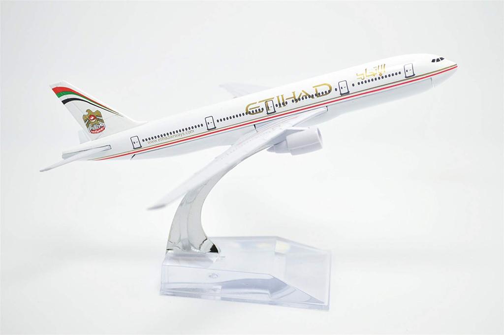 Airlines: Etihad Airlines. Aircraft: Boeing B777. Scale:1:400,Note:The base and stand will random shipments, you may got different from the picture. Material:Die-cast metal, Weight: Approx. 200g. Model Dimension: [Nose - Tail]: Approx. 16cm,1inch=2.5cm,[Wingtip Across]: Approx. 14cm,1inch=2.5cm.