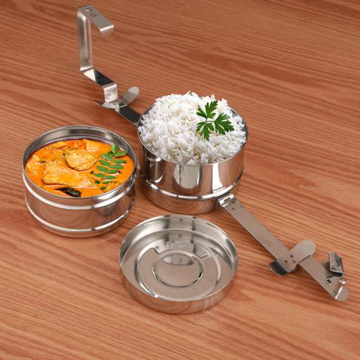 Delcasa 2 Layer Steel Bombay Tiffin made of high-quality food-grade stainless steel. Take this steel tiffin to the office, school, camping, or hiking. Highly durable and resistant to corrosion. Rust proof and hygienic, this food container allow you to easily pack a lunch for yourself. This is great for meal planning and portion control. This stainless steel tiffin helps you to carry a fair amount of food and it keeps the food fresh too. Allowing you to easily load up on healthy mid-day snacks.
