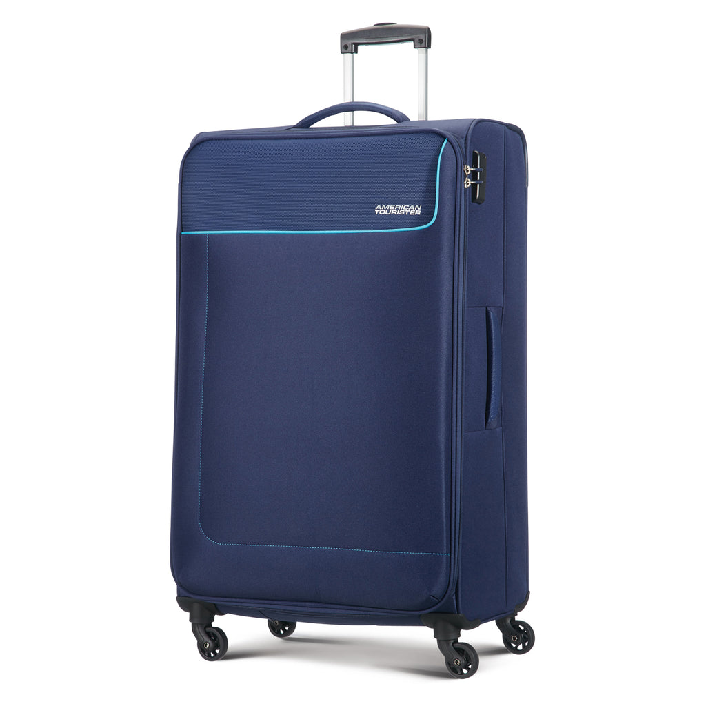 American Tourister Jamaica soft luggage has all the features you need for easy traveling. Featuring an inside mesh pocket for travel accessories, Packing straps for ease of packing, Push button trolley for ease in height adjustment. The modern, textured design will help it stand out from the crown in baggage claim.