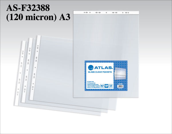 Atlas Glass Clear A3 Pocket Polypropylene 120 Micron File Folder