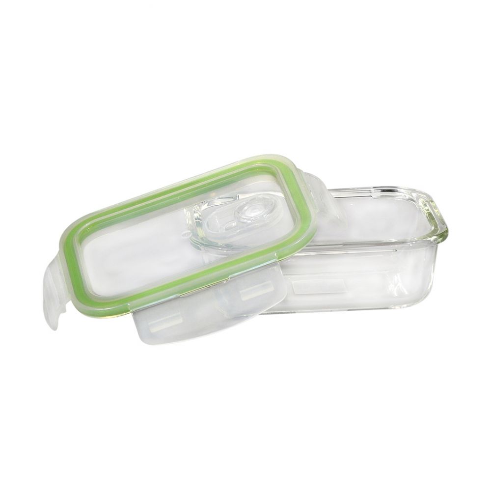 <p>Royalford presents you with high-quality glass food container for fresh food storage. Lightweight yet strong this food container is made of high-quality borosilicate glass which is both durable and eco-friendly. Keep your food fresh and organized with this food storage container. Use it to store chopped vegetables, portions from your slow cooker, your packed lunch for the office or that leftover slice of cake for later. This box has its own lid with clip locks to create a secure, airtight seal. Because each of the four sides has its own locking clip you can be sure that the contents will be kept safely inside with no risk of them accidentally falling out. This glass container is microwave, oven, freezer and dishwasher safe so you can use them to store and cook your food, and reuse them time to time again. They are also great for carrying snacks and meals when you out and about, in the office or for a school lunch.</p> <p>Modular stacking design ensures the best use of space available. Easy to use locking clips plus flexible seal, food stays fresher for longer. This food container can be cleaned by simply rinsing with water and washing liquid to cut grease or by placing in the top rack of a dishwasher. The size of this food container has been specially selected to ensure it suits most households average and flexible usage.</p> <p><strong>PLEASE NOTE:</strong> The plastic lids should not be put in the oven and microwave