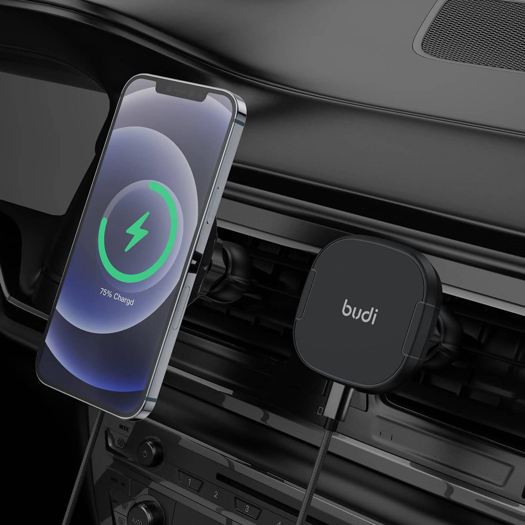 - The BUDI car charger is compatible with Type-c 15W charging, so it can be used to wirelessly charge your iPhone 8 or newer series and any mobile phone with a MagSafe case or a BUDI MagSafe sticker. The charging speed may vary depending on the output voltage of your mobile phone and the car charger However, it can output wireless charging speeds up to 15W.