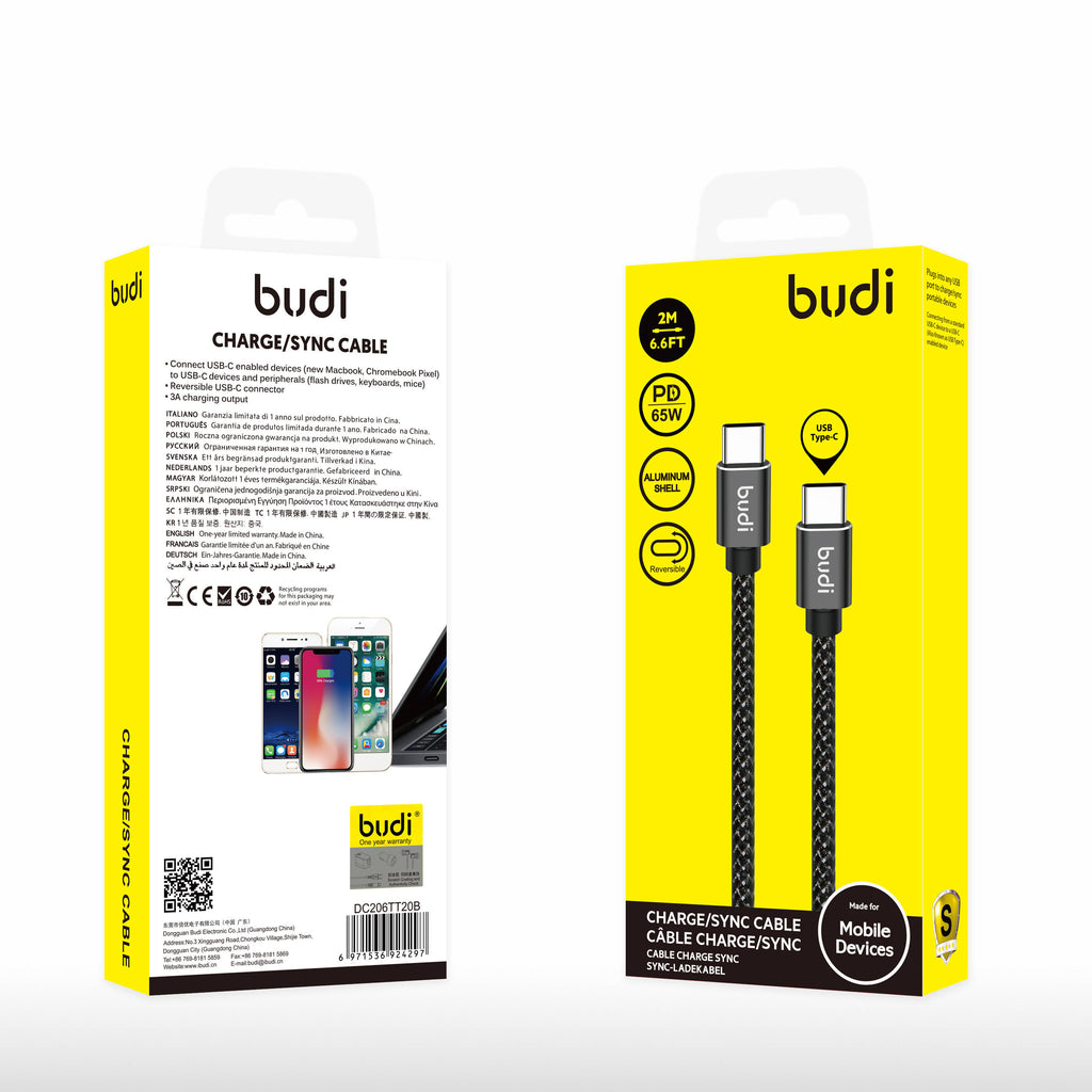 Budi USB C Fast Charging Aluminium Shell Black