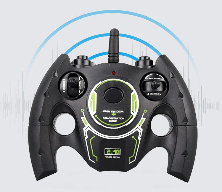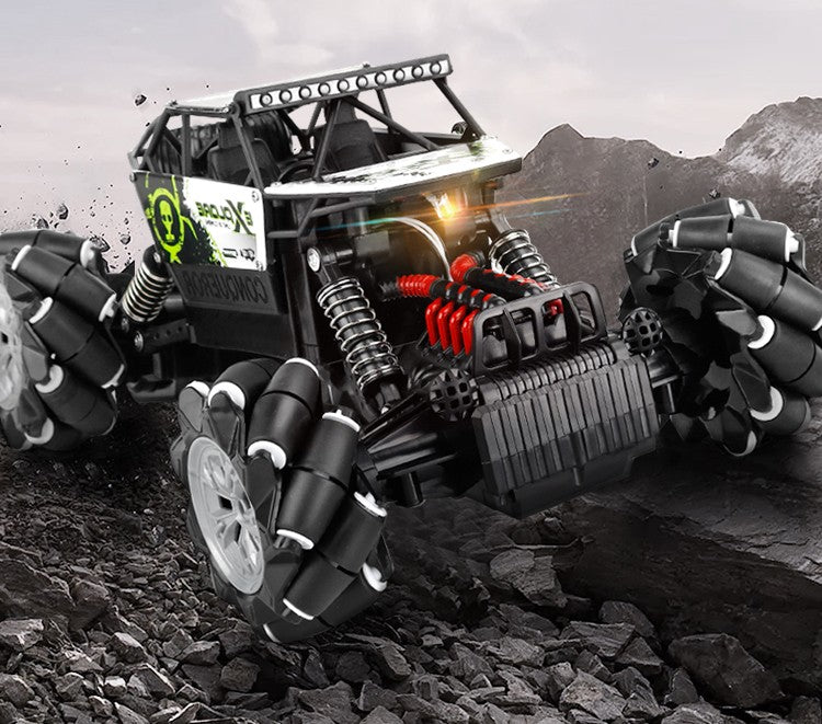 Unique wheels allow the car to easily overcome obstacles in the way and leave its rivals far behind. The design of the wheels is presented in the form of independent diagonal rollers that rotate around its axis, so that the machine can not only go back and forth, turning to the sides, but also go sideways and turn 360 ° in place. The presence of lighting effects, lifting at an angle of 45 °, a shock absorption system with independent suspension, demo mode, programming mode.