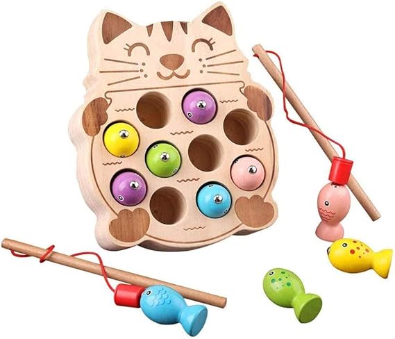 - Included Items: 10 magnetic fish, 2 fishing rods, and a wooden base.