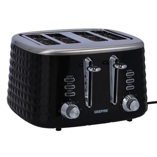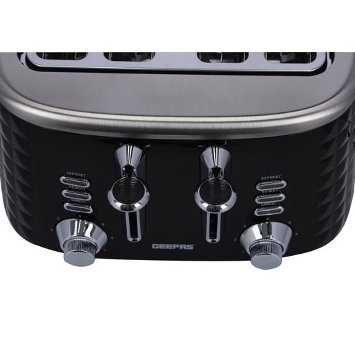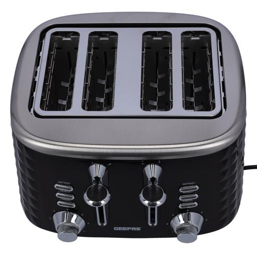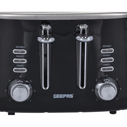 Start your day with a perfectly crisp slice of toast using the Geepas 4 Slice Toaster. With its two extra-wide slots, this toaster can easily accommodate homemade bread and more. Its dual bread guides automatically adjust to accommodate different bread thicknesses, helping ensure even toasting. Featuring a user-friendly control panel and an intuitive dial, the toaster allows you to adjust toast shade and cancel toasting with just a push of a button. A high-rise lever elevates toast for easy retrieval.