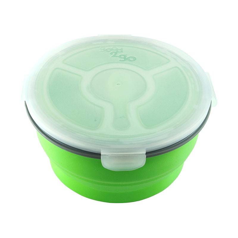 Expandable silicone food container collapses to less than a third of its original size for quick and easy storage Lockable lid keeps food fresher for longer Distinct for eating on the go (picnics, office/school packed lunches etc) Full care and uses instructions enclosed with the product