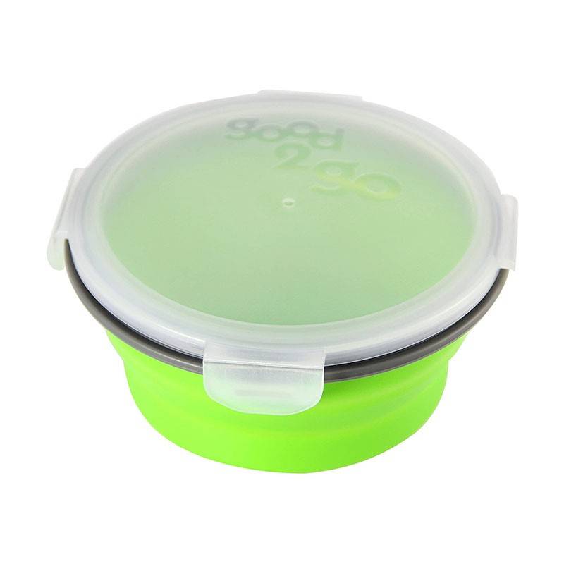 Expandable silicone food container collapses to less than a third of its original size for quick and easy storage Lockable lid keeps food fresher for longer Distinct for eating on the go (picnics, office/school packed lunches etc) Full care and uses instructions enclosed with the product