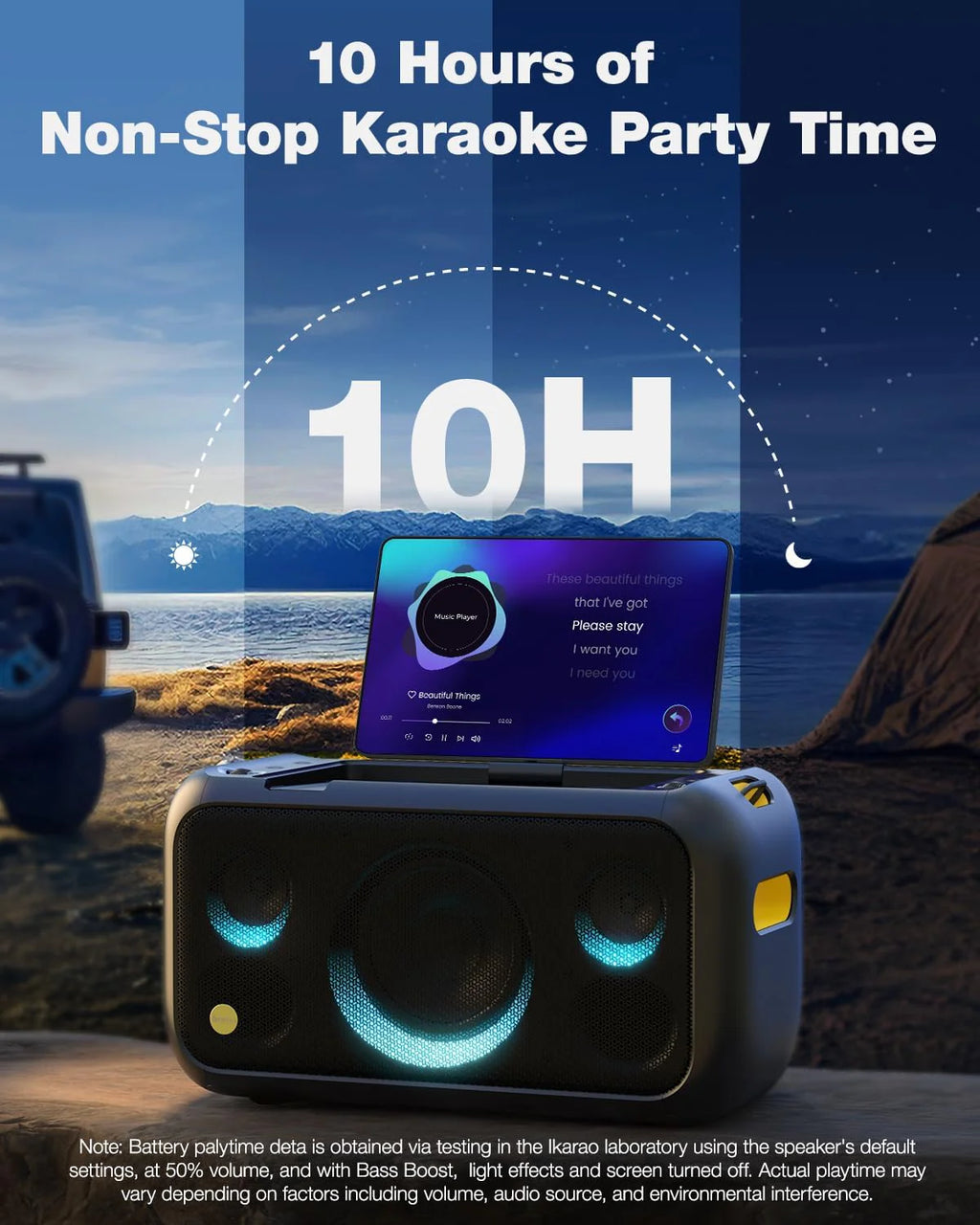 - Portable & Party-Ready: Easy to use, carry, and set up. Includes a shoulder strap, 6-hour playtime, and 30-hour mic battery. Add a dynamic light show and you’ve got a party anywhere, anytime.