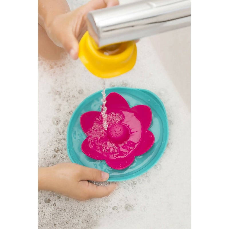 The Lili floating flower set will transform your bathtub into a fairy tale pond! Kids will love the transparent lid as it becomes a magical see-through window to discover what happens under the bubble bath foam. Parents will love it too. All four pieces click together for easy storage and are super easy to clean so they stay fun and safe.
