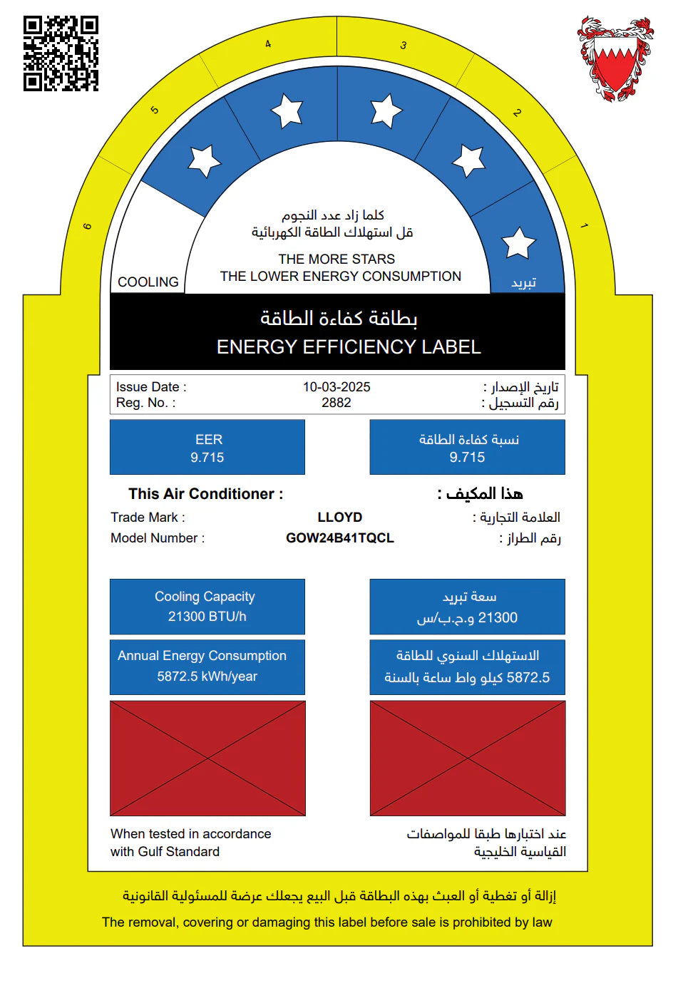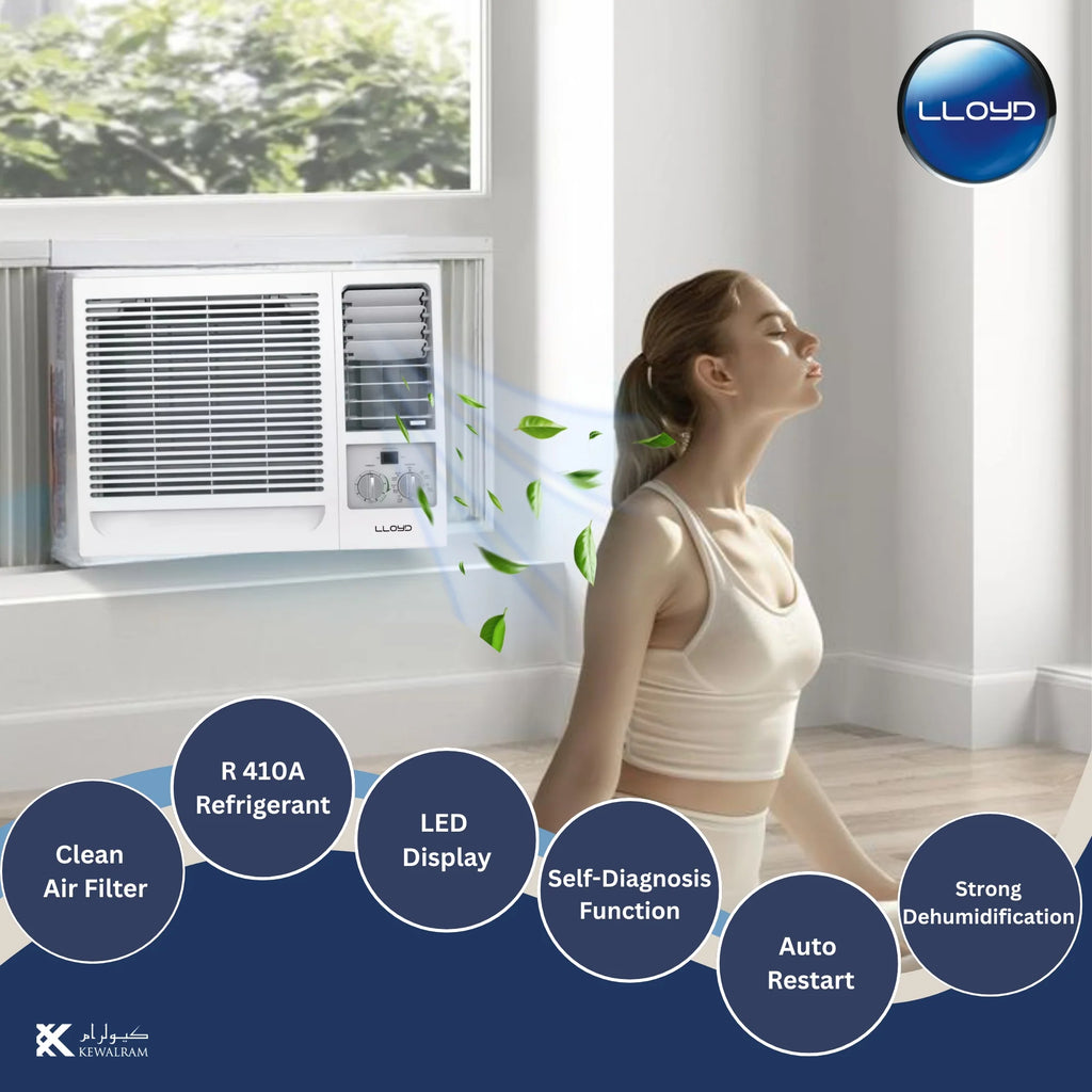 Lloyd 2.0 Ton Window Air Conditioner, GOW24B41TQCL Capacity: 2.0 tons (21,300 BTU/h), ideal for rooms up to