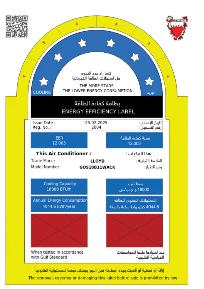 Lloyd 2.0 Tons Split AC, GOS24B11WACK Capacity: 2.0 tons (22,000 BTU/h), ideal for rooms up to 200.
