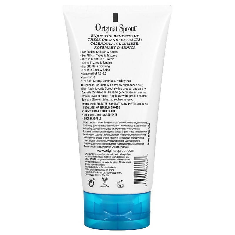 Use liberally on freshly shampooed hair, rinse. Apply favorite Sprout styling product and air dry.