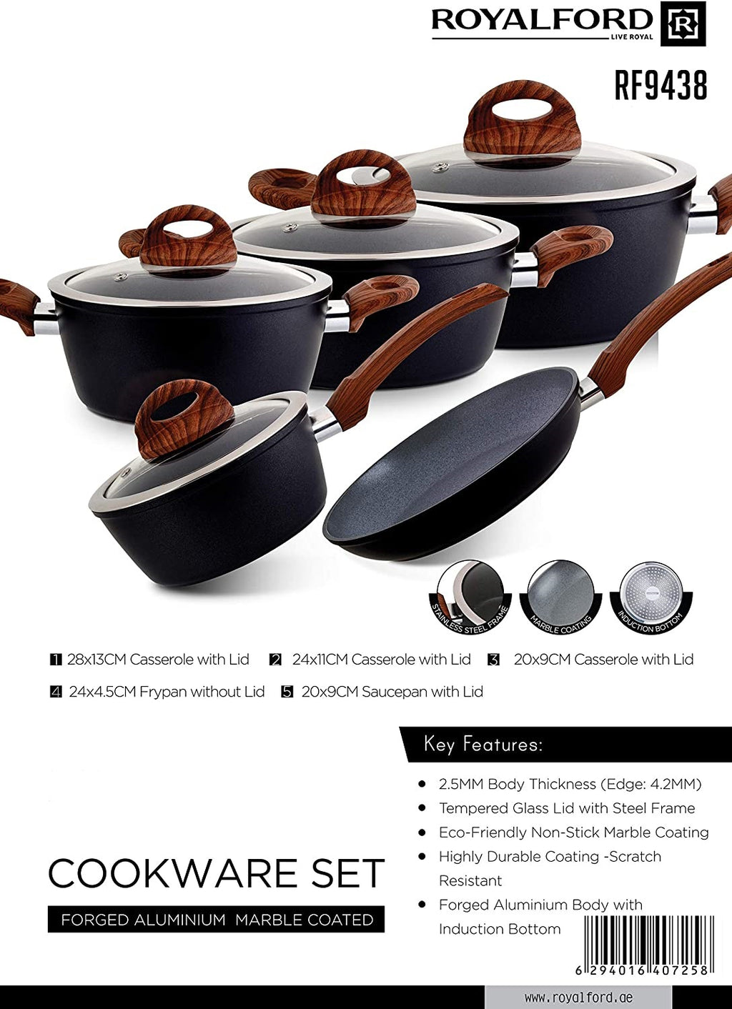 Brand: Royalford. 10 Pieces Aluminum Monarch Cookware Set.