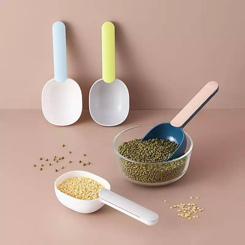 Scoop Rice Spoon Wheat Straw Rice Ladle shovel digging flour spoon Large capacity Kitchen Tableware Grain amount with clip spoon