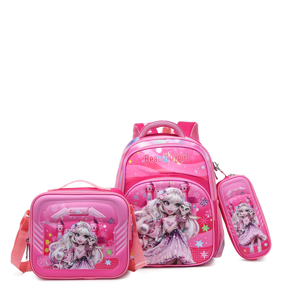 Introducing the STARGOLD Stylish Fabric Baby Backpack Set (SG-BP225 Pink D2): A delightful combination of fashion-forward design and practical functionality, this set of three 14-inch baby backpacks is tailored for modern parents who seek both style and convenience.