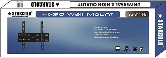 Stargold Wall Mounted Fixed TV Fittings Suitable for 17-50 inch universal and high-definition TV, Size: 300 x 300mm, Distance to the wall: 25mm, Loading capacity: 35kg, Color: Black.