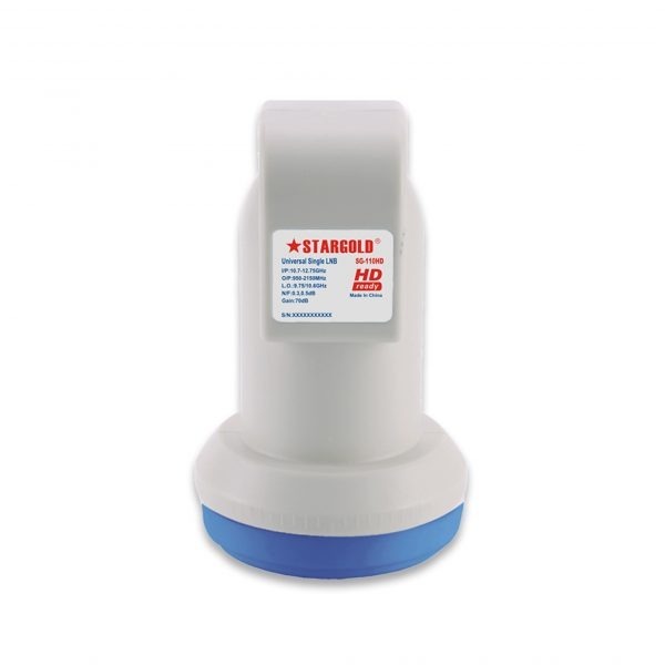 UNIVERSAL HIGH EFFICIENCY SINGLE LNB LOW VISUAL IMPACT DESIGN WATERPROOF HIGH IP PROTECTION INDEX EXTRA HIGH QUALITY DIGITAL RECEPTION I/P:10.7 ?12.75GHz & O/P:950-2150MHz L.O:9.75,10.60GHz N.F:0.2,0.3,0.5 dB GAIN:70 dB