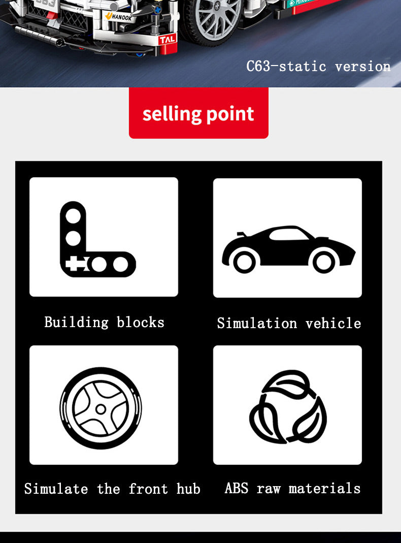 Product Name:Super Racing Car Building Blocks Technic Car Series C63 Model Bricks Toys for Children Gifts;