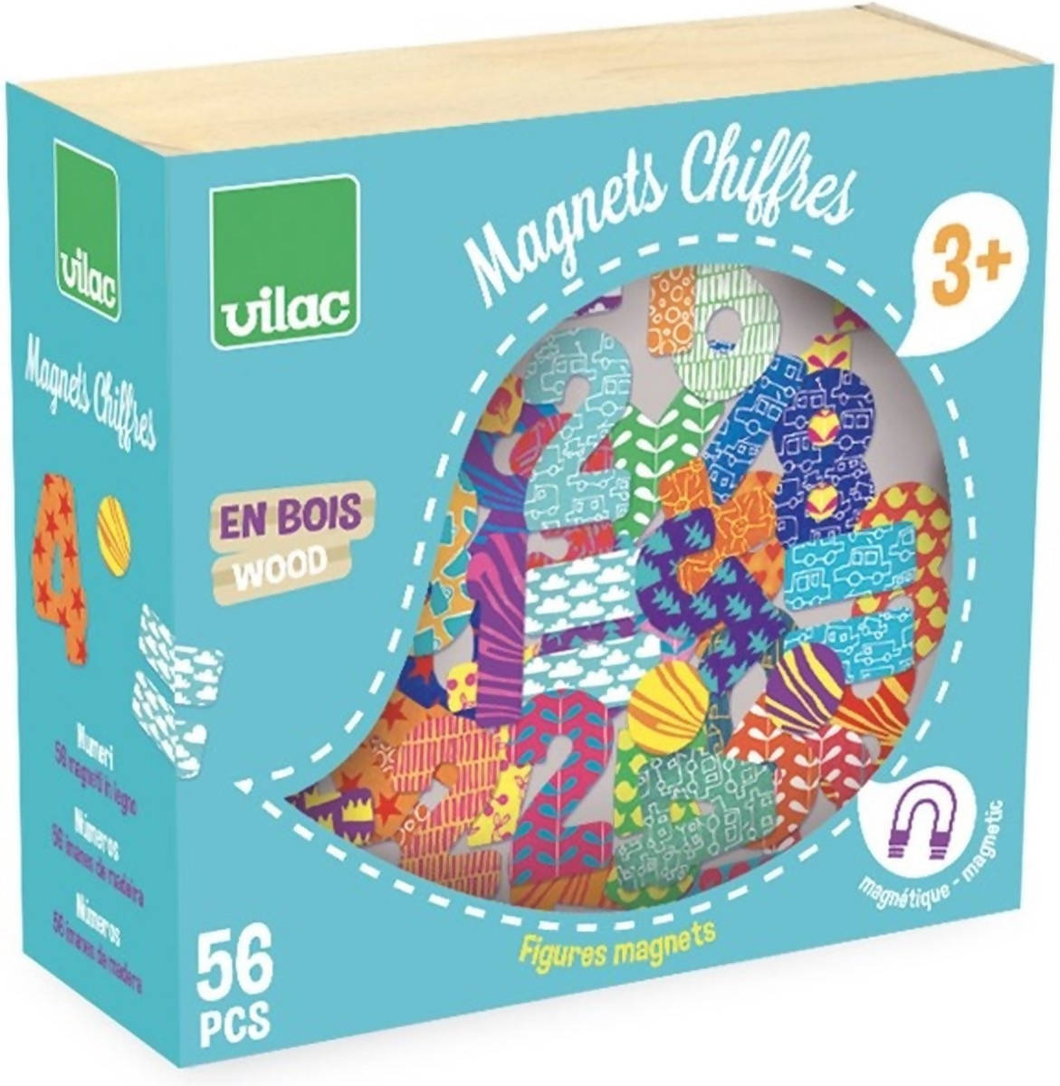 Learn to make your first sums and recognize numbers with these beautiful handmade wooden toy magnets from Vilac from France. The 56 magnets come in a handy wooden storage box.